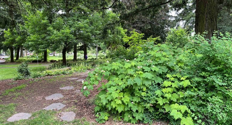 Created in 2020, the Lents Nature Patch is a one-acre pollinator garden with a high diversity of native plants that support insects and wildlife.